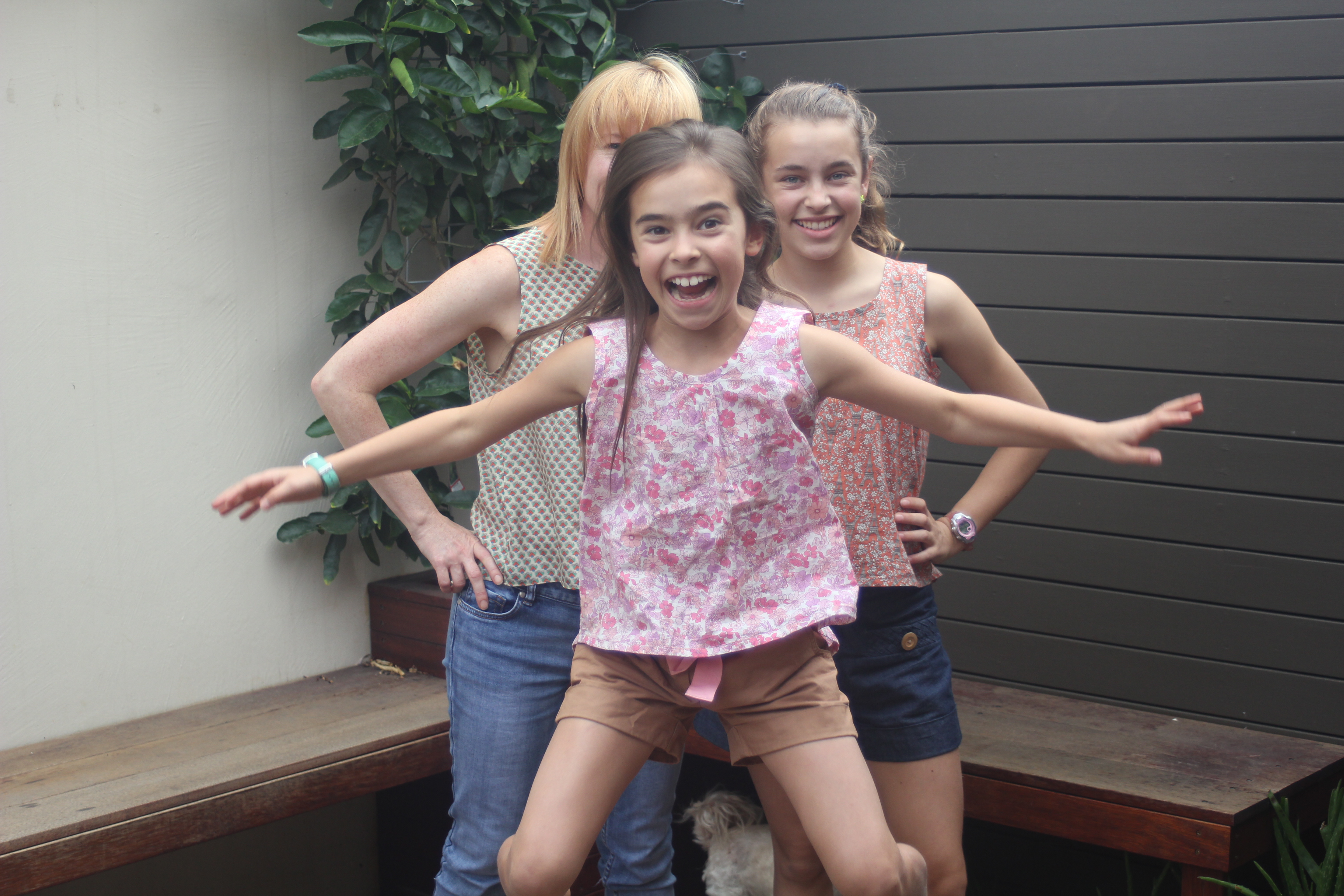 I made these tops using a self drafted pattern, they are longer at the back. I scaled it down for Little Madam and the Munchkin but not quite enough for the Munchkin’s so I put a little pleat in the front before I attached the binding.