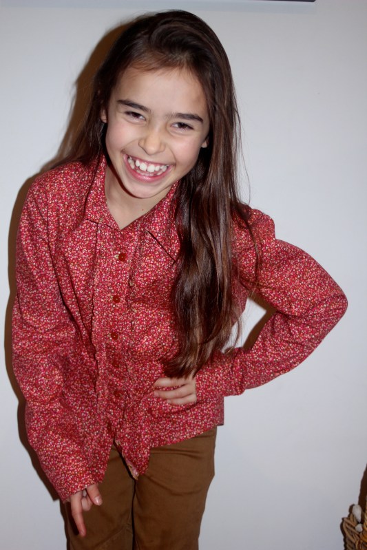Anyway the munchkin now has a very pretty new blouse for winter. Its a Burdastyle pattern and I love the front frill detail. I didn’t hem the frill, just overlocked it with some contrasting green cotton using three threads instead of four so the stitch wasn’t as wide.