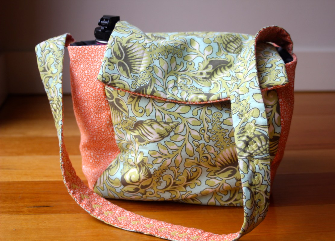 Its a great pattern, very roomy and the elasticised drink bottle holders are great – a little big for her drink bottle but the thermos fits perfectly. It has two flaps which at first confused the heck out of me – I thought I had an extra piece of fabric cut out for no reason but one of them has a little pocket that holds the ice-pack. Ingenious!!