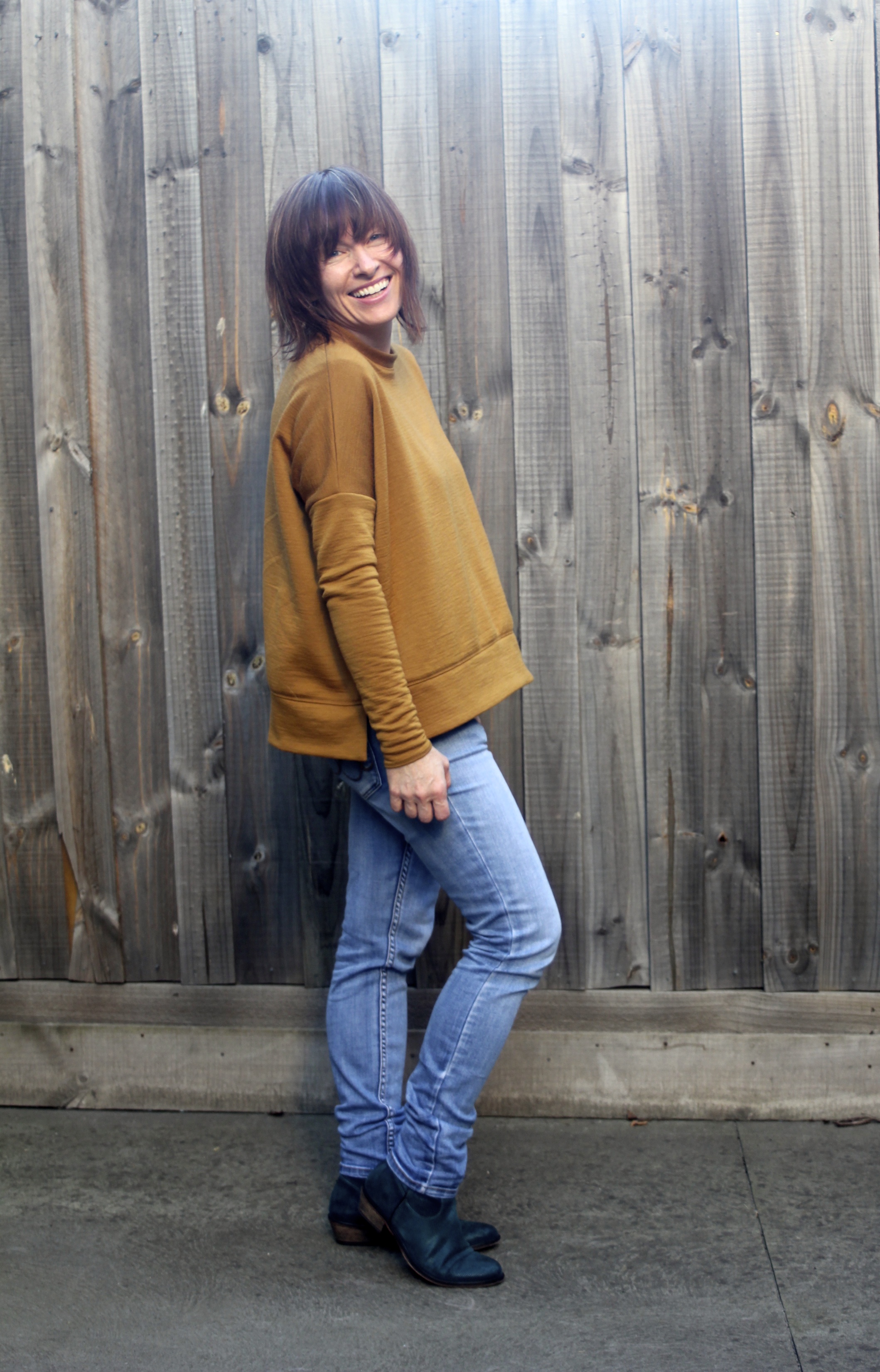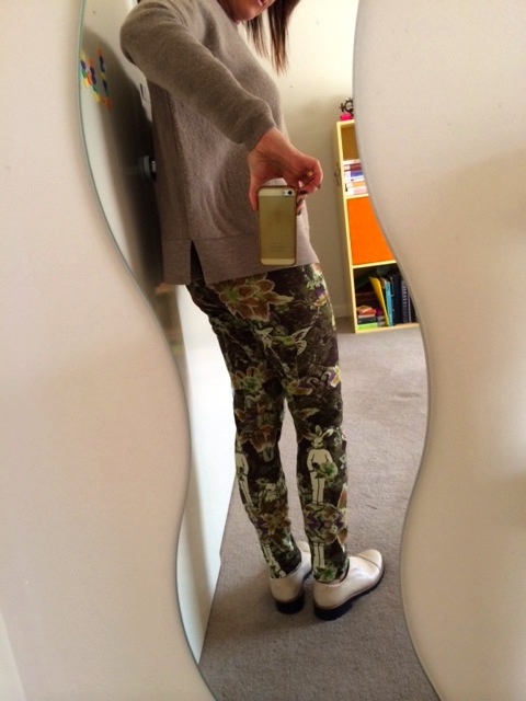 Scout tee in printed cotton sateen from Tessutis, purchased pants, love these pants and have worn them pretty thin. Me thinks they are not long for this world cause I’m gonna pull them apart to draft a pattern from them, when you find a pair of pants that fit………..